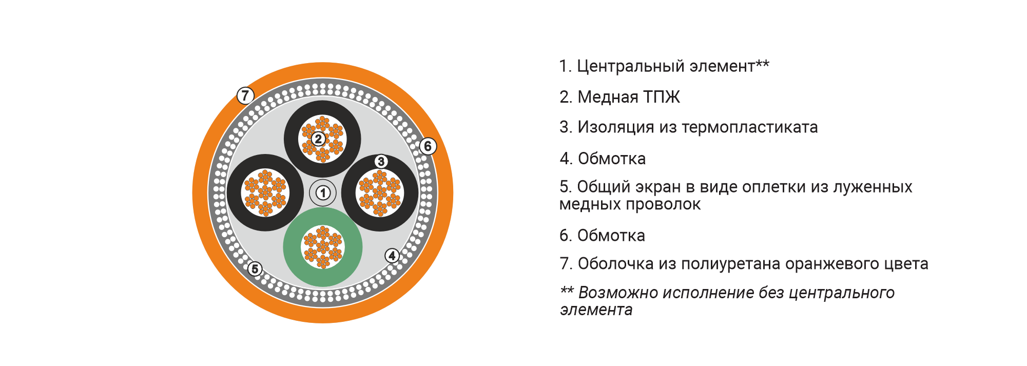 Возможно выполнение с 5, 6 и 7 изолированными жилами.