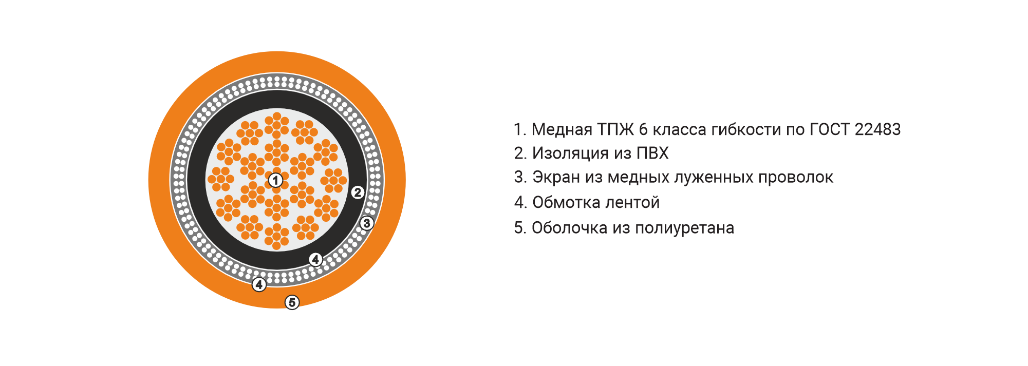 Провод гибкий для транспорта марки Эластокаб ПГЭВПу-(0,5-120)/6*-Т100