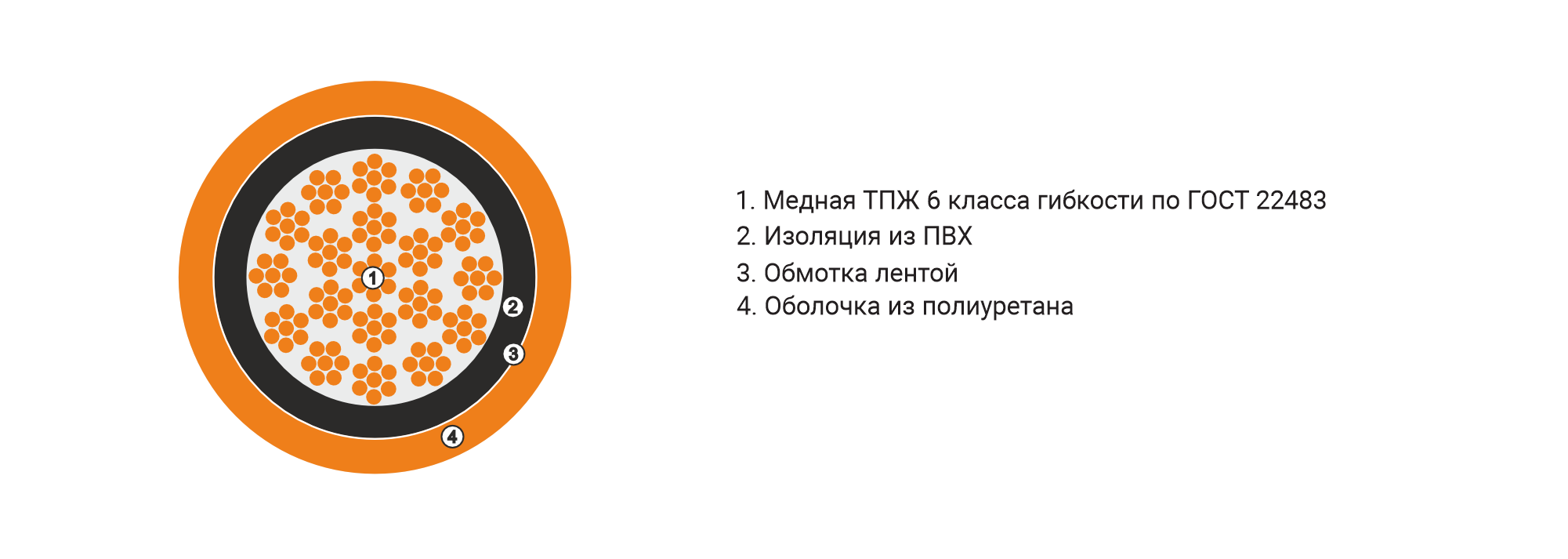 Провод гибкий для транспорта марки Эластокаб ПГВПу-(0,5-120)/6*-Т100