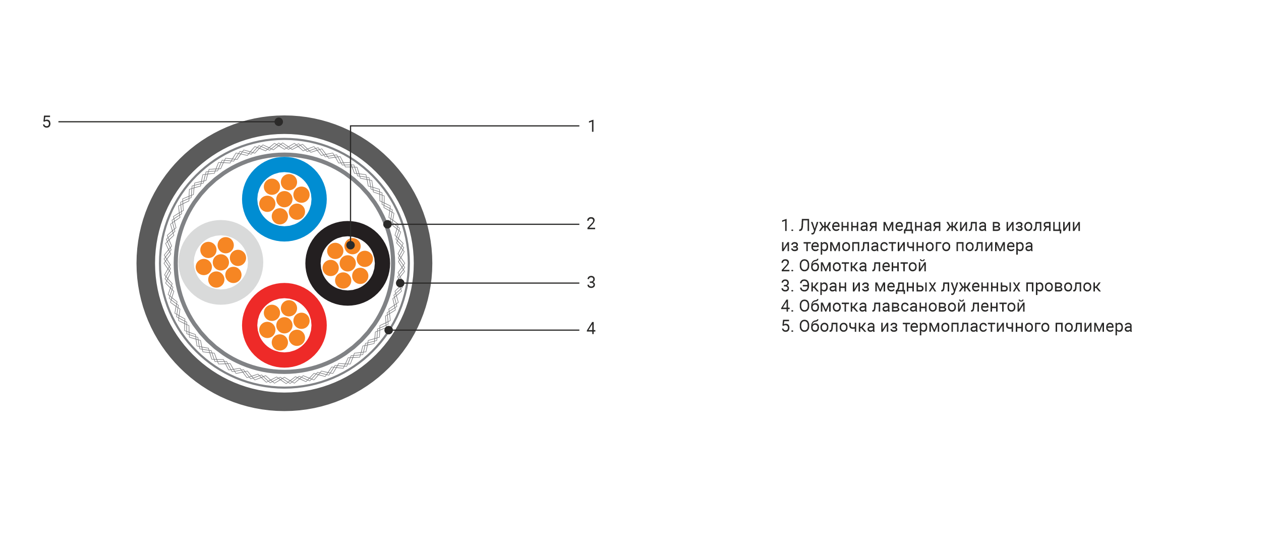 Симметричный микрофонный кабель КВБЭнг(А)-HF 4x(0.22-0.35)